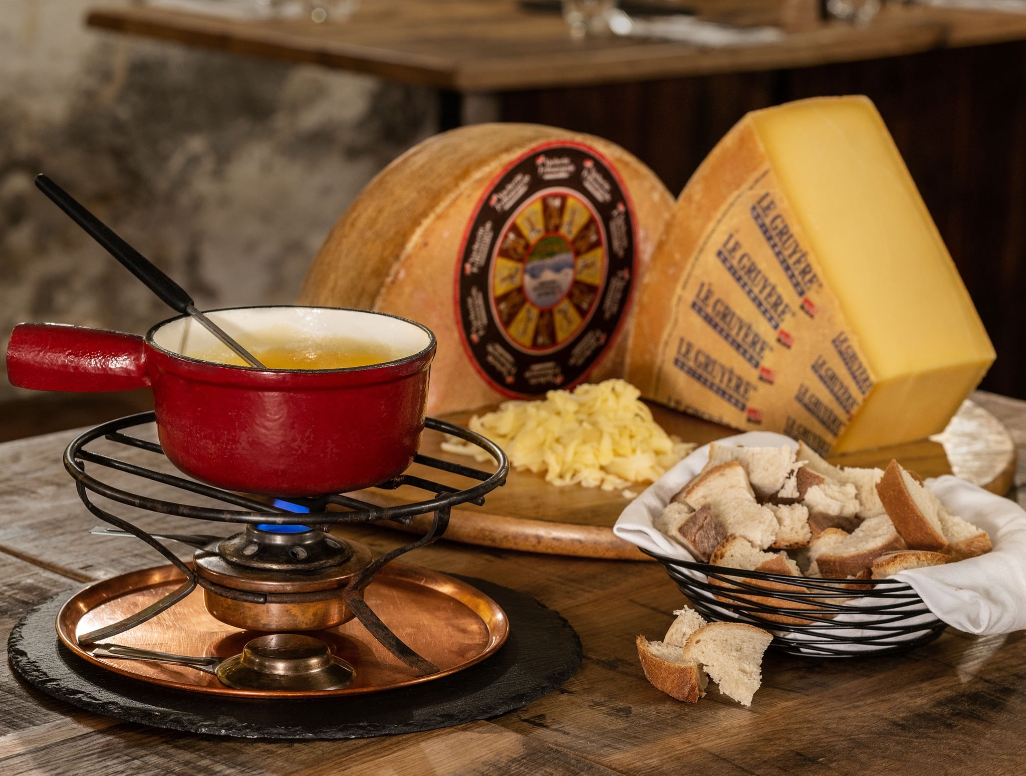 At Restaurant Le Museum, we use only the original Swiss cheese fondue, a mixture of Gruyère and Vacherin fribourgeois cheeses which is highly appreciated.